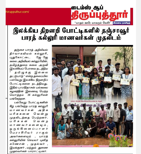 Bharath College of Science & Management (Autonomous), Thanjavur, stands as a distinguished institution of higher education dedicated to academic excellence, intellectual growth, and social transformation. Since its inception, the college has been committed to creating an educational environment that nurtures knowledge, innovation, discipline, and ethical values.